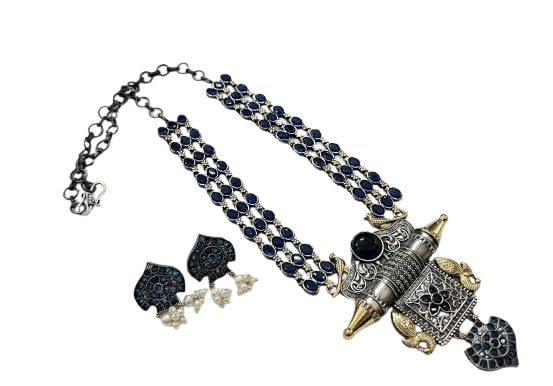 indiancraftsbykanika oxidized dual tone stone work necklace set with matching earrings for women, color : blue