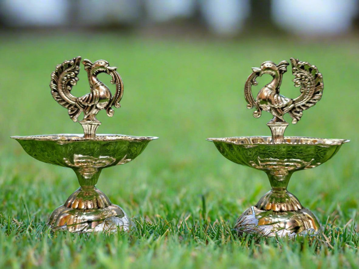 silver plated peacock diya set for housewarming/ diwali