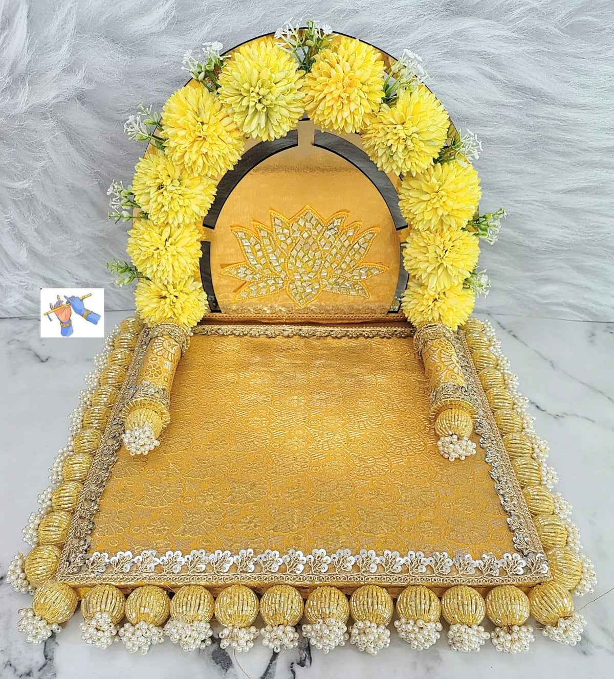 wooden Floral Arc lotus design Singhasan for laddu gopal, yellow
