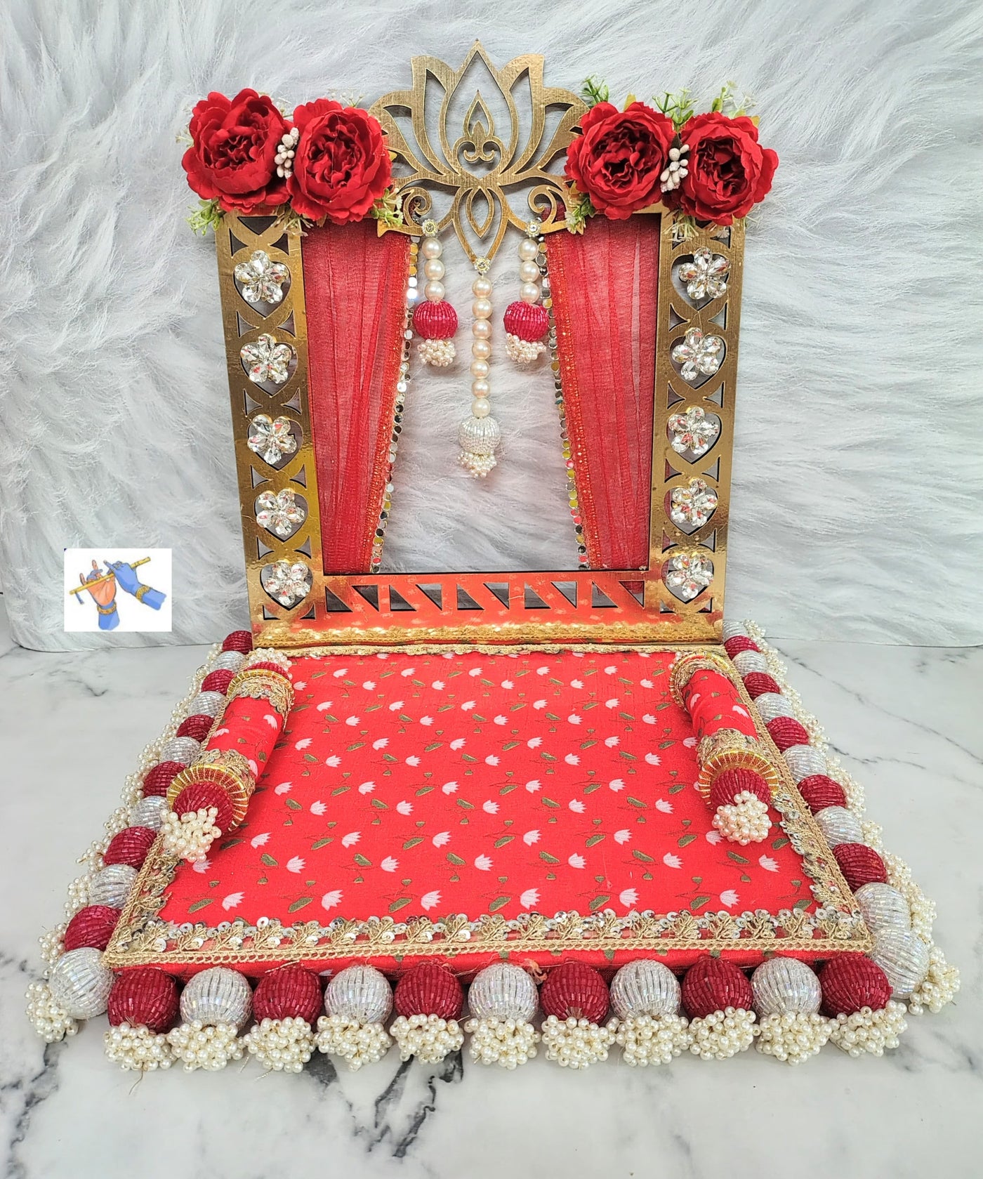 wooden Foldable lotus singhasan for your Mandir Ganpati or laddu gopal, red