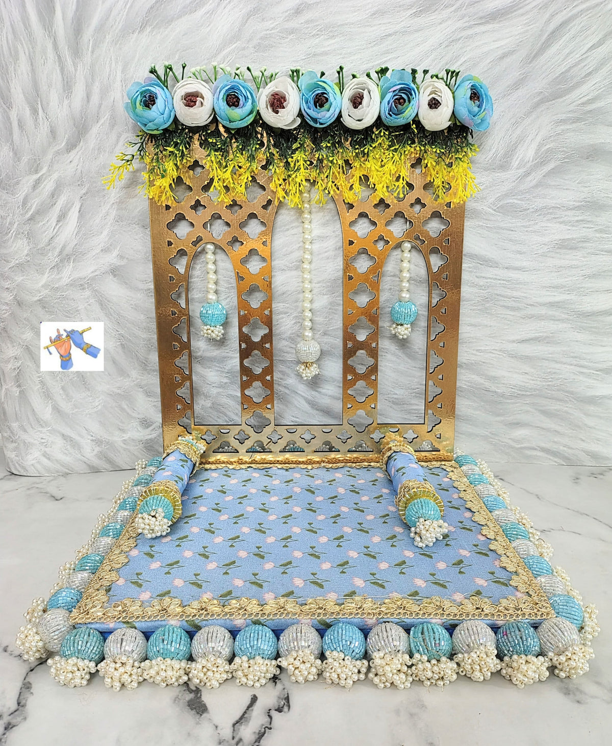 wooden Foldable rose singhasan for your Mandir Ganpati or laddu gopal, blue