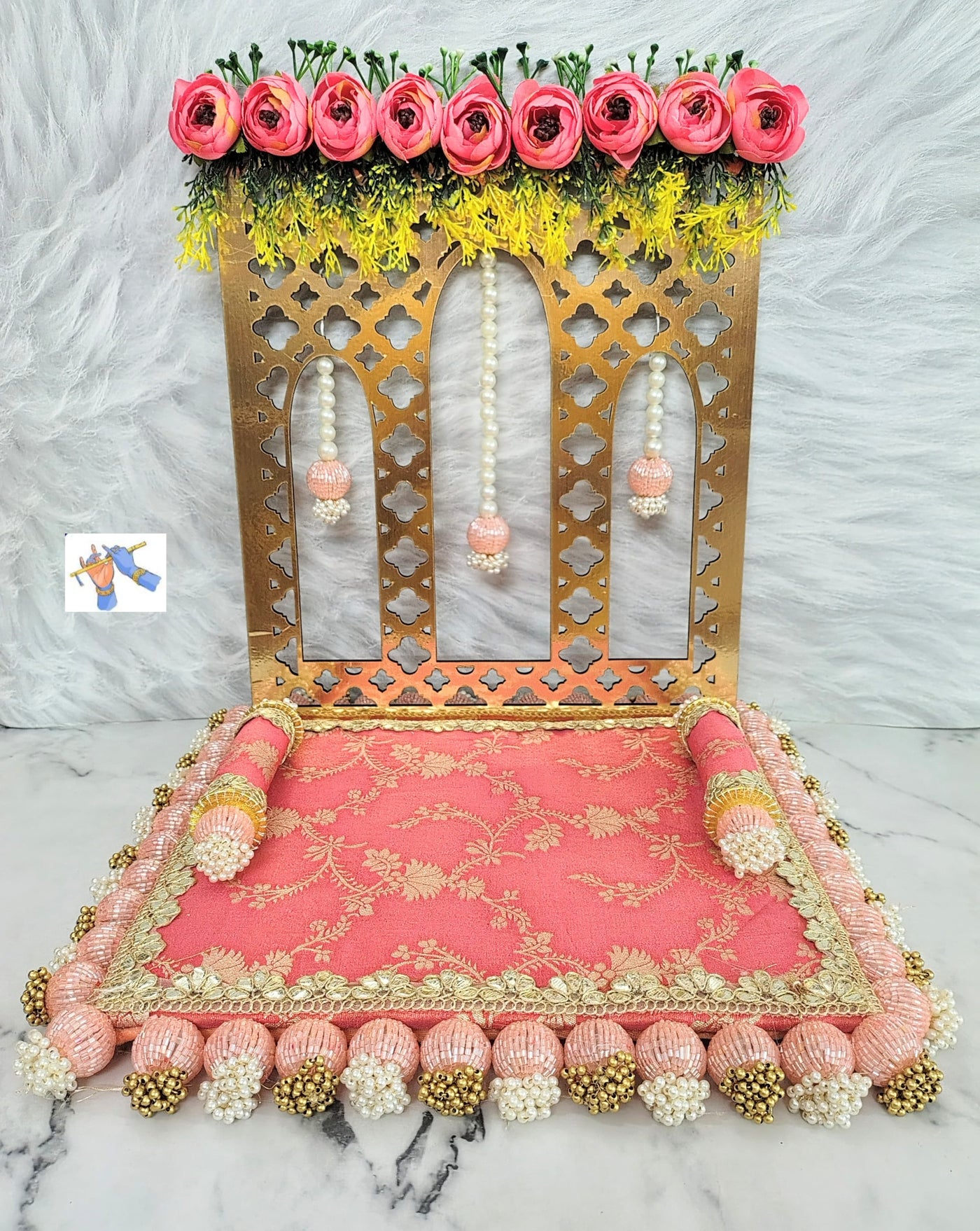 wooden Foldable rose singhasan for your Mandir Ganpati or laddu gopal, pink