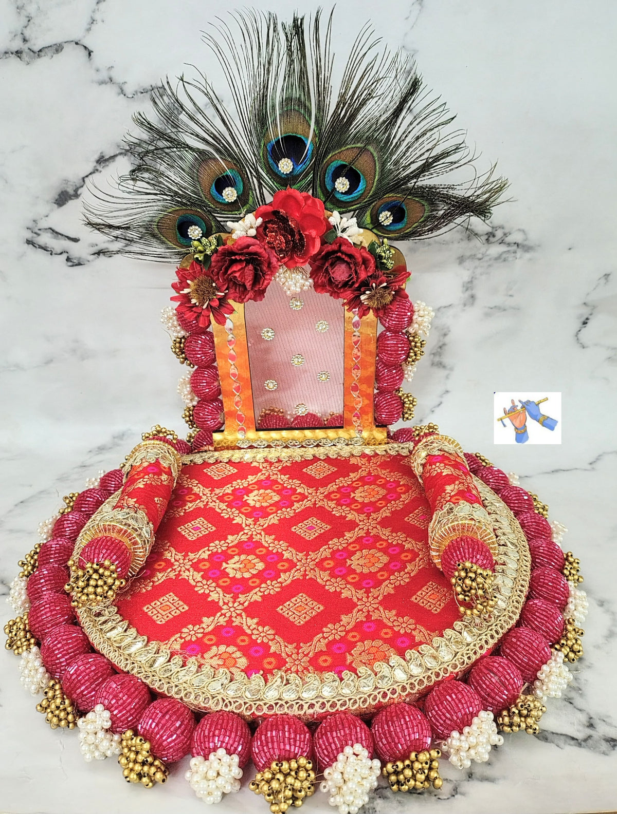 wooden Laddu gopal ji or Ganeshji Foldable singhasan for your Mandir or home Decor , red